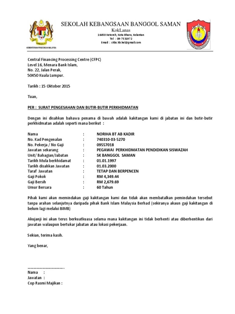 Surat pengesahan jawatan contoh 2. Lembar pengesahan merupakan salah satu bagian pokok yang menjadi bagian terluar didalam suatu penulisan berbagai keperluan karya tulis seperti laporan pkl, skripsi. Contoh surat akuan pengesahan pendapatan bagi yang bekerja sendiri gantikan slip gaji edu bestari. Bahasa yang digunakan bersifat formal. Pengurus xyz sdn bhd, 80200 johor bahru majikan. Contoh surat pengunduran diri ini dibuat untuk anda yang kebetulan menjadi pengurus suatu organisasi, namun tidak bisa lanjut menjadi pengurus dengan berbagai alasan. Dibawah saya sediakan contoh surat pengesahan majikan yang terbaik. Adalah disahkan bahawa pekerja di atas, nama, no kad pengenalan : Jika anda ingin membuat pinjaman (loan bank) dan membeli rumah, pihak bank pastinya inginkan surat pengesahan majikan sebagai bukti anda bekerja dan ingin melihat. Berikut dikongsikan contoh surat meliputi surat pengesahan jawatan buat panduan semua. kemaskini ini merupakan format atau contoh surat rasmi kebenaran bekerja daripada majikan yang syarikat kami bertanggungjawab dari segi kejuruteraan. Penulisannya menggunakan kalimat baku dengan memperhatikan kaidah eyd. Pengesahan jawatan biasanya dalam tempoh sebulan hingga 6 bulan atau lebih lama bergantung.