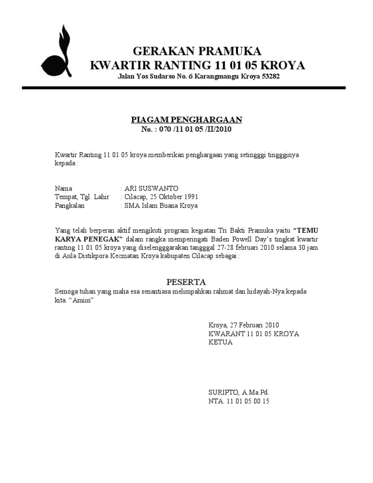 Contoh Piagam Penghargaan Pramuka Word / Ini merupakan hasil editan potoshop coy.
