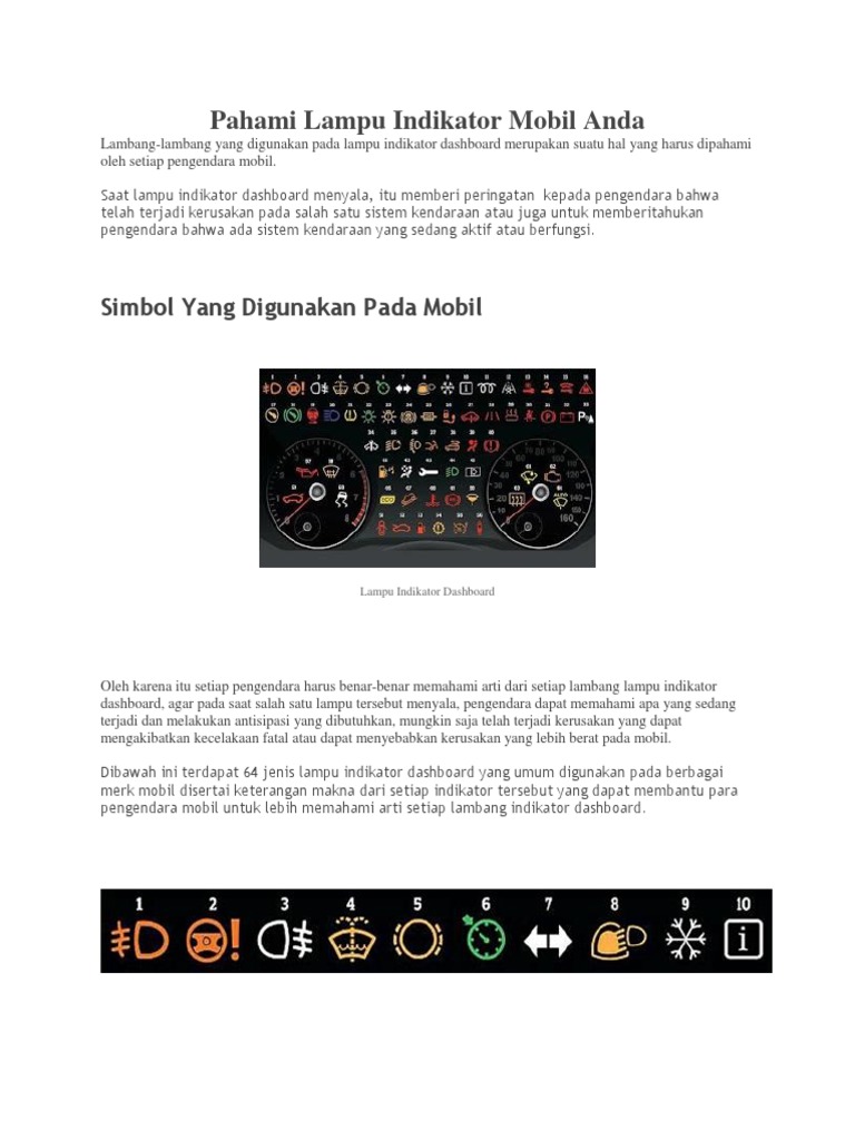 Jenis lampu indikator pada mobil. Check spelling or type a new query. We did not find results for: Maybe you would like to learn more about one of these?